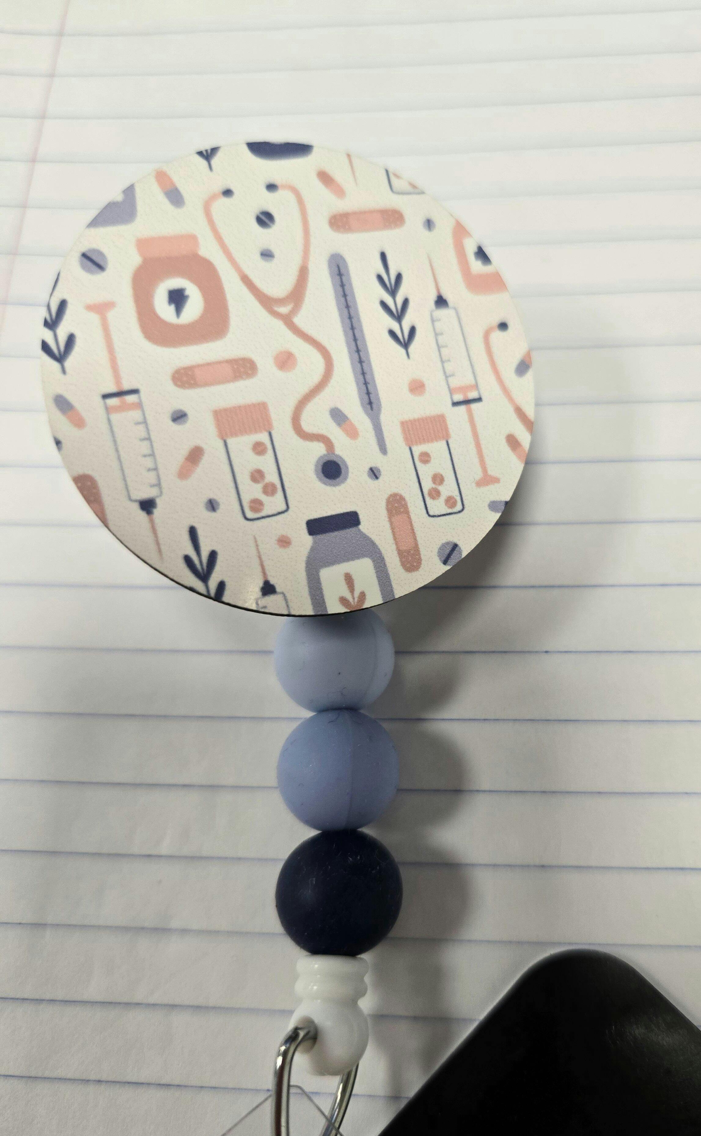 Adorned with silicone/ wood beads these badge reels can be easily cleaned after a shift!